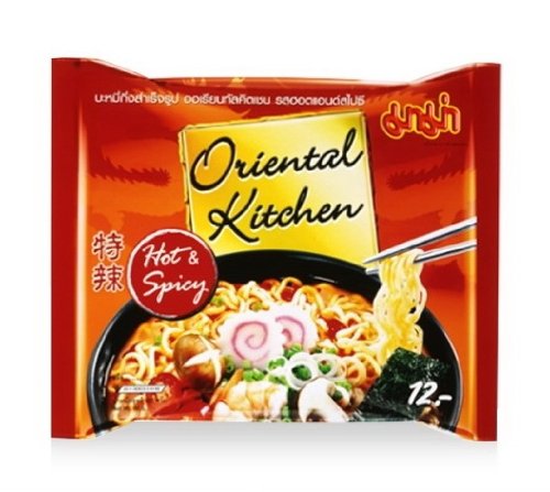 Though before being fried many of the noodles flavored with is the chicken stock, this flavor is one of a few flavors that used salted soup, which may well be the good choice for vegetarian. / Life of instant noodles is determined by the materials used for packaging and how the products are kept. Typically, instant noodles sold in Thailand must be consumed within 4-6 months after manufacturing date to make sure freshness. Then again, in cool places such as refrigerator, air-conditioned room or in the countries with cooler climates, instant noodles can also be kept for up to 8-12 months. / Wheat Flour 55.82% Palm Oil 4.74% Red Chilli Powder 2.28% Dehydrated Vegetable 1.39% Monosodium Glutamate 1.15% Disodium 5′ Inosinate, Disodium 5′ Guanylate No preservative added, natural colour added. Thai Threshold store.